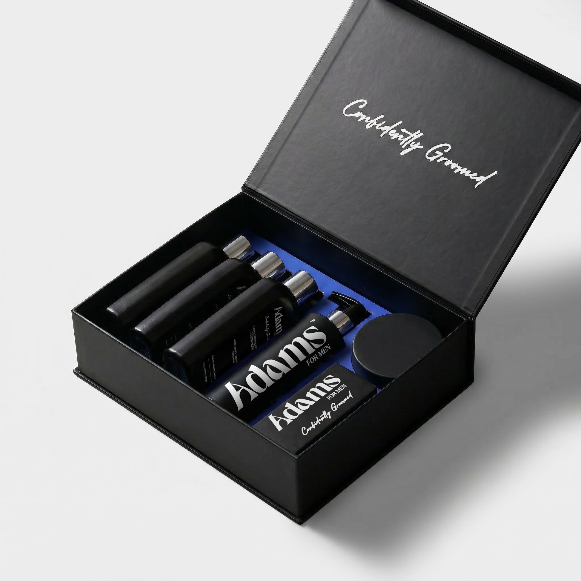 تجمع الهدية الكاملة روتين العناية الكامل من Adams for Men في تقديم أنيق ومتكامل. ستة منتجات أساسية؛ لتنظيف الشعر واللحية والبشرة، وتقويتها والعناية بها بتركيبات فعّالة وواضحة.